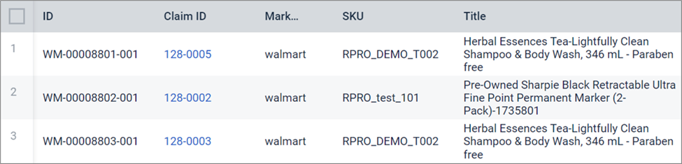| Claim ID | Unique identifier for a return claim generated by ReturnPro. Clicking this number will display a side panel with claim details, product records, and a claim summary. |