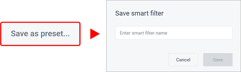 - "Save as Preset" lets you store the current filters as a Smart Filter Preset, which can be named and selected later from the Select Smart Filter Preset dropdown.