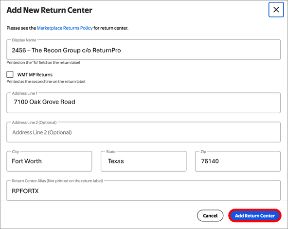 ReturnPro operates four dedicated return centers throughout the United States and Canada, providing a wide range of value-added services. These services include receiving, sorting, refurbishing, sanitizing, repackaging, fulfillment, recycling, donating, and returning items to vendors. You have the flexibility to specify a ReturnPro return center as your preferred destination for returns within your settings on Walmart Seller Central.