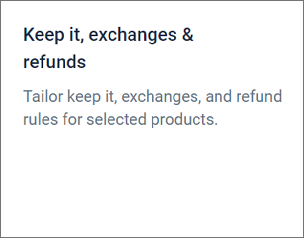 “保持它、换货和退款”功能允许您为商店中特定的产品定制退货选项。通过此功能,您可以配置设置,以决定客户是否可以保留商品、换货或退款。