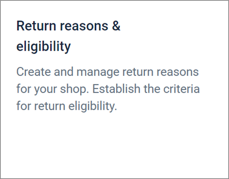 退货原因与资格功能块提供了用于创建和管理商店退货原因的工具。此功能允许您根据特定的退货原因,确定哪些商品符合退货资格