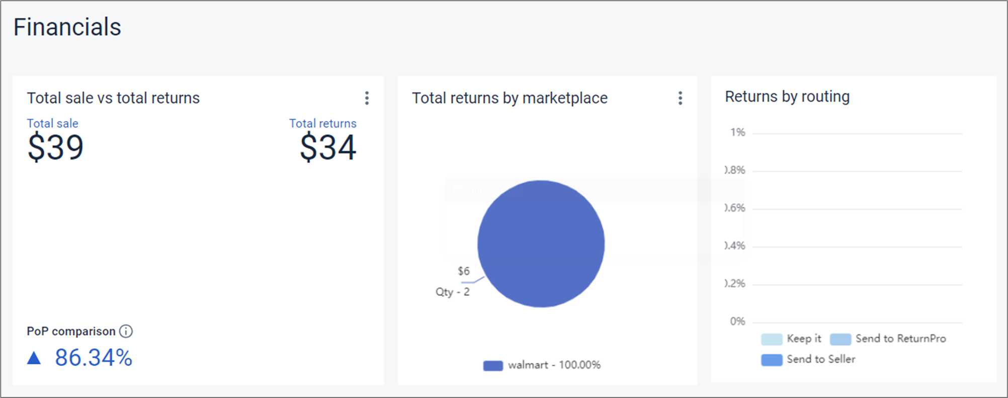 | 财务影响 | 退货处理后,ReturnPro参与的卖家最终财务结果,反映了商品的总盈亏,包括再销售及其他相关因素。 | 所有 |