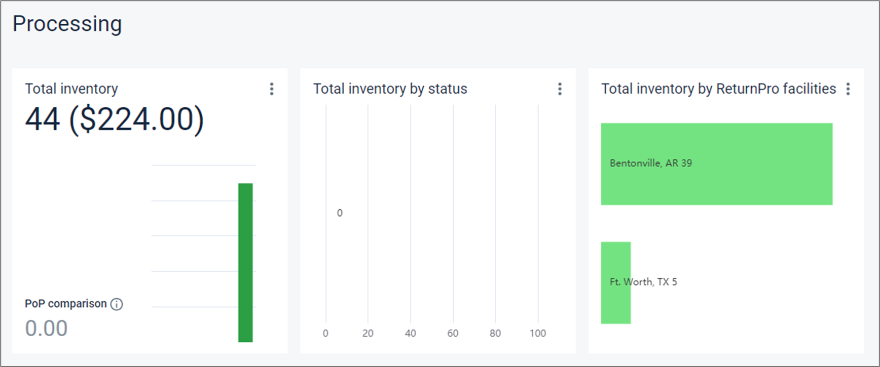 - 按ReturnPro仓库分类的总库存:显示在指定日期范围的最后一天,每个ReturnPro仓库中的库存单位数量