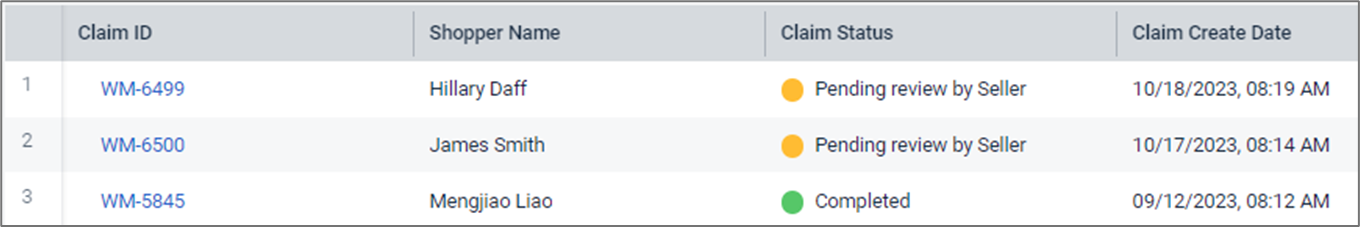 | 索赔ID | 由ReturnPro生成的退货索赔唯一标识符。点击此号码将显示一个侧边面板,其中包含索赔详情、产品记录和索赔摘要。 | 全部 |